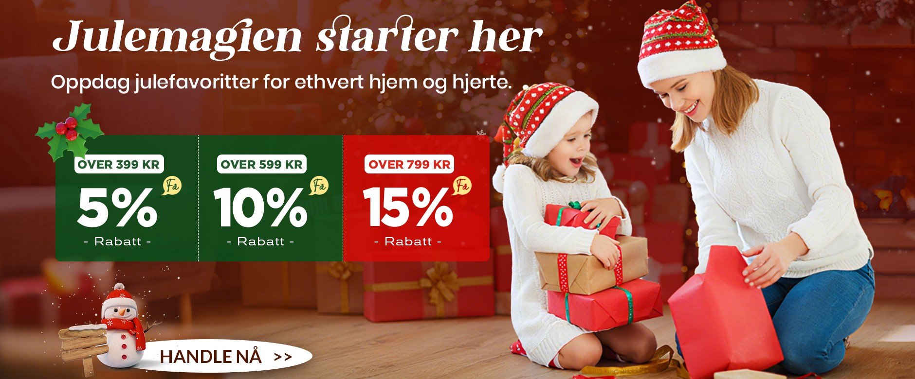 Over 399 kr, -5 % | Over 599 kr, -10 % | Over 799 kr, -15 %