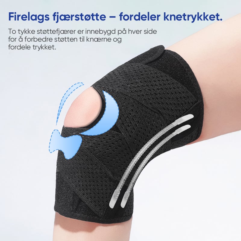 - Ergonomisk passform: Former seg etter kneets kurve uten å påvirke naturlige bøyings- og rettebevegelser.