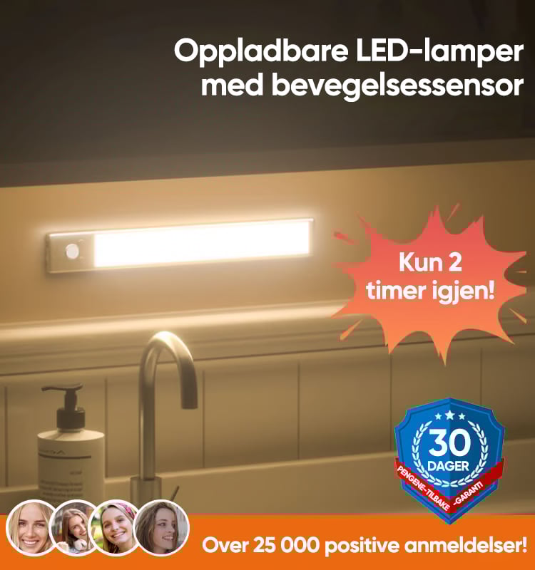 Perfekt for under kjøkkenskap. Lyset er jevnt og skarpt, og den vanntette funksjonen gir meg trygghet i nærheten av vasken.